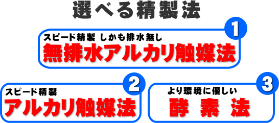 世界基準 汎用性のあるアルカリ触媒法を採用。